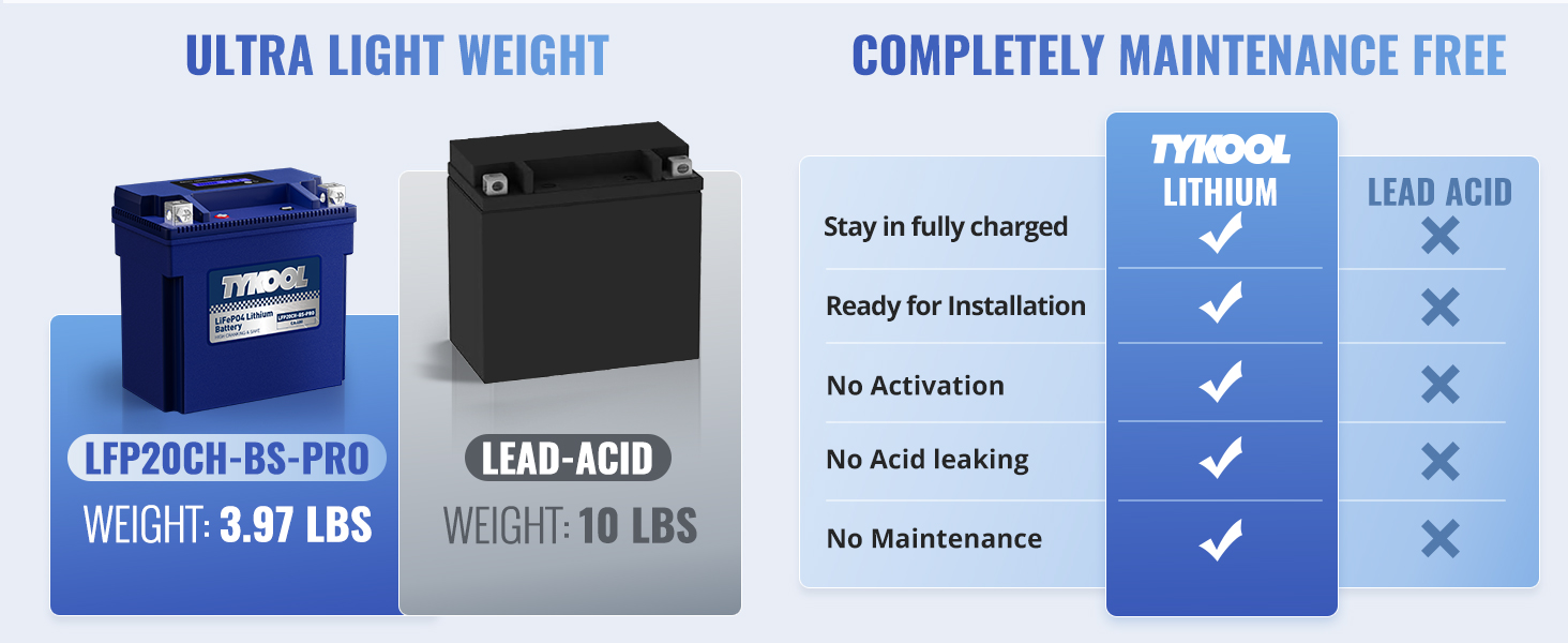 With an impressive 480 cold cranking amps, this battery delivers significantly more starting power than standard lead-acid batteries, which only offer 270A. Additionally, the battery boasts an ultra-long shelf life of up to 3,000 cycles, far outlasting the typical 300 cycles of a lead-acid battery. This ensures reliable performance for years to come.