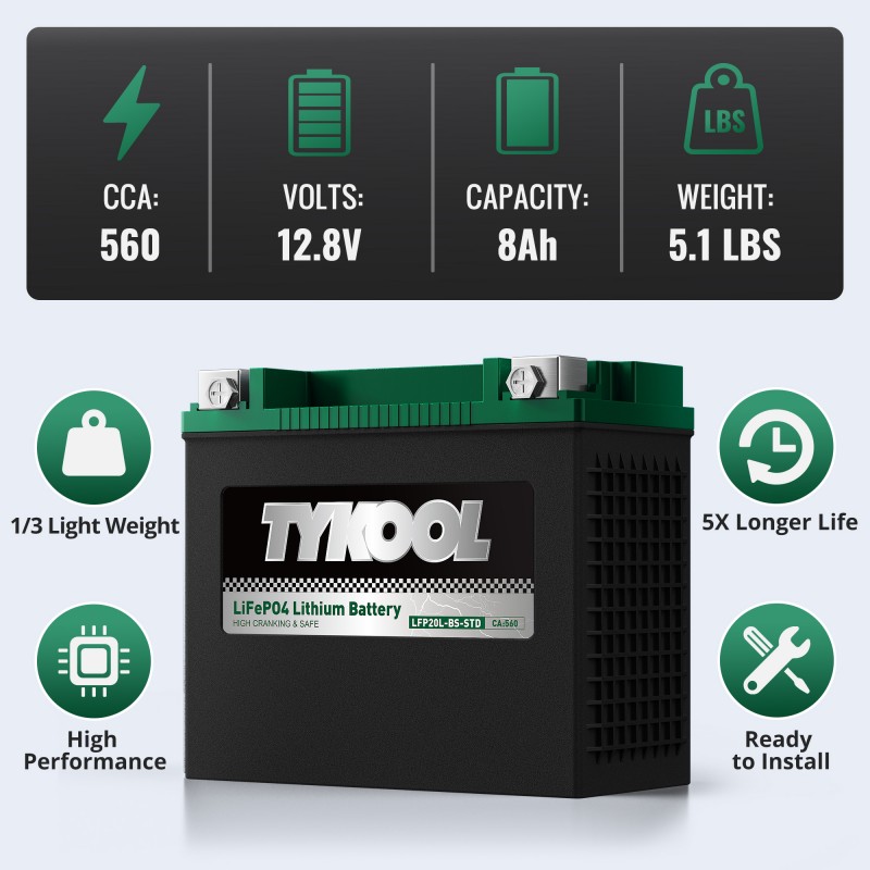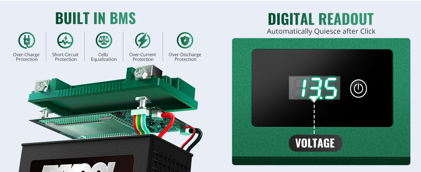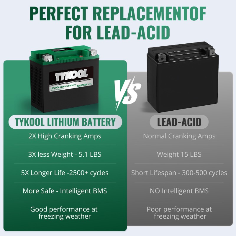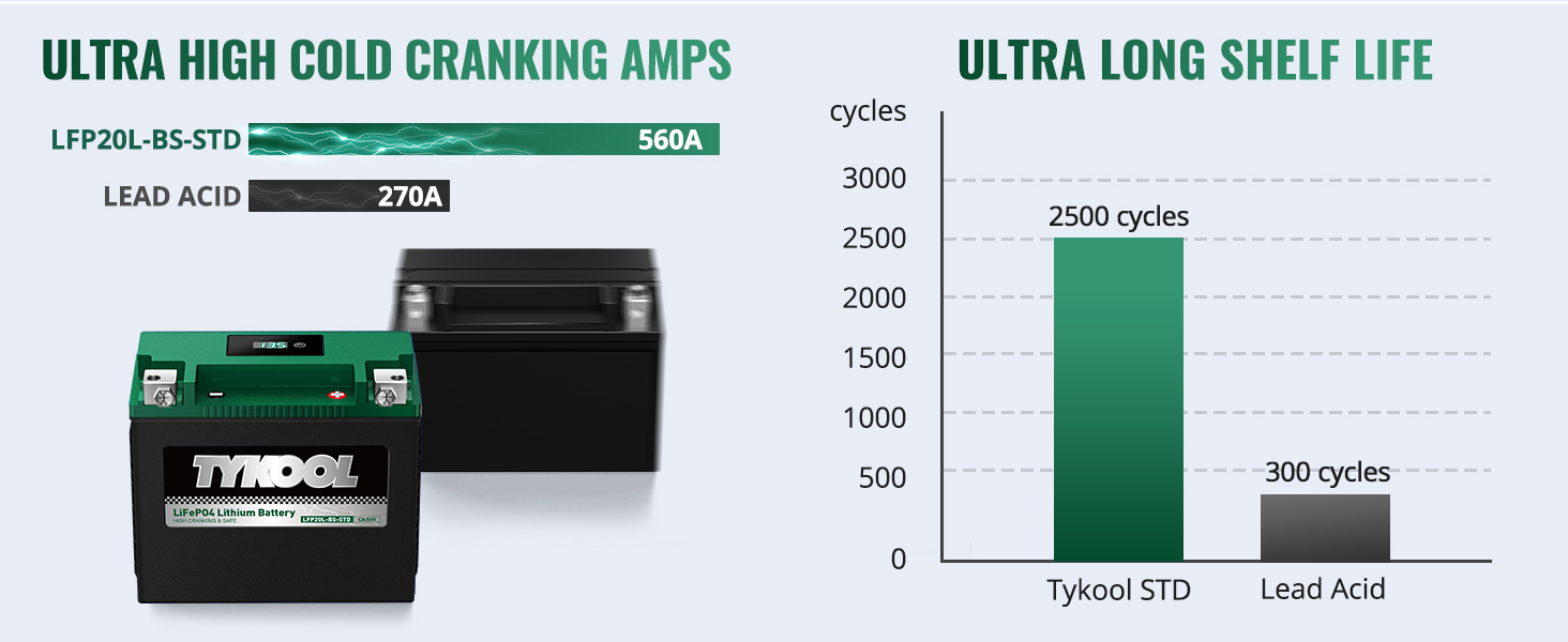 Experience powerful starts with ultra-high cold cranking amps of 480A, far exceeding traditional lead-acid batteries. Additionally, this battery offers an impressive lifespan of 2,500 cycles, outlasting the typical 300 cycles of a lead-acid battery, ensuring long-term reliability and performance.