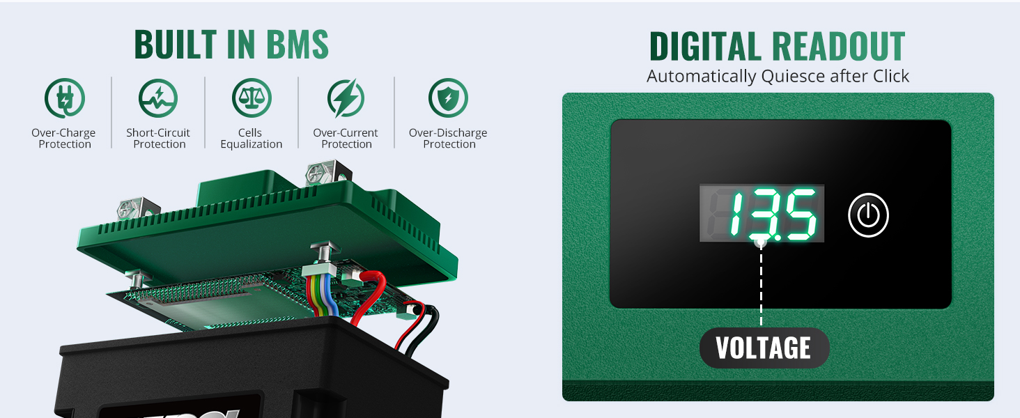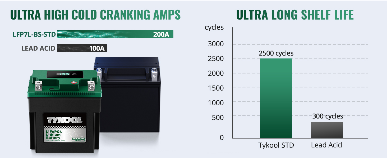 Experience superior starting performance with ultra-high cold cranking amps (200A), ensuring reliable ignition even in the coldest conditions. This battery boasts an ultra-long shelf life and supports up to 2500 cycles, significantly outlasting traditional lead-acid batteries that typically offer only 300 cycles. Designed for longevity and consistent power, it’s the ideal choice for demanding applications.