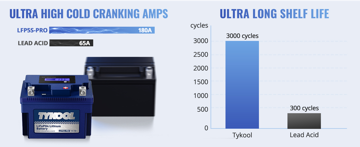 With a high cold cranking amp (CCA) of 180A, this battery outperforms traditional lead-acid options that offer only 65A, providing a reliable start even in the harshest conditions. Not only does it deliver over 2X more power, but it also boasts an ultra-long lifespan of up to 3000 charge cycles, compared to the typical 300 cycles of a lead-acid battery.