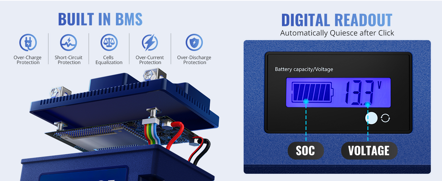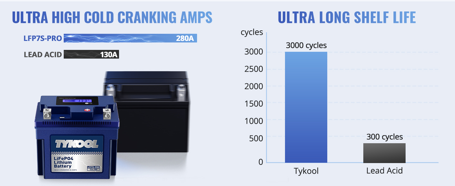 Featuring an impressive 280A cold cranking power, this battery delivers reliable starts in the toughest conditions, far surpassing traditional lead-acid batteries that offer only 130A. Combined with an ultra-long shelf life and up to 3000 cycles, it ensures durability and consistent performance, making it a superior choice for your power needs.